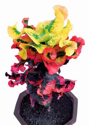 Codiaeum variegatum croton or very suited to outdoor plants . This plant has a lot of color on the leaves . These colors are more beautiful if you look at the sun .For maintenance, you do not need to worry . Croton plants require little water .
