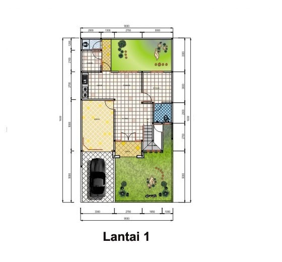 concept 2 floor house was deliberately made minimalist, because look at the ground situation is not too wide but able to cover the supporting elements such as front and back yard, car garage and a spacious living room of course.